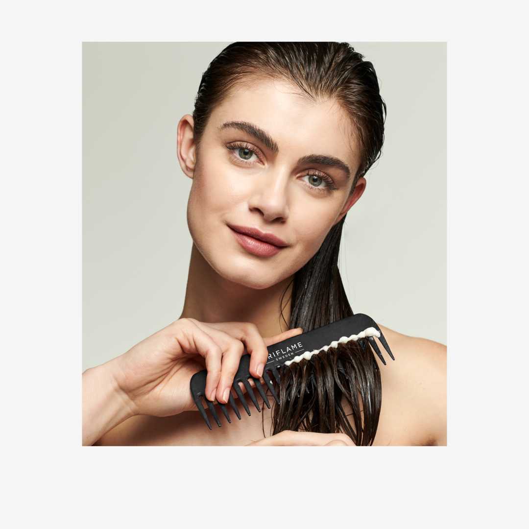 Нанеси на влажные волосы и распредели по всей длине. Оставь на 5 минут. Тщательно смой водой.