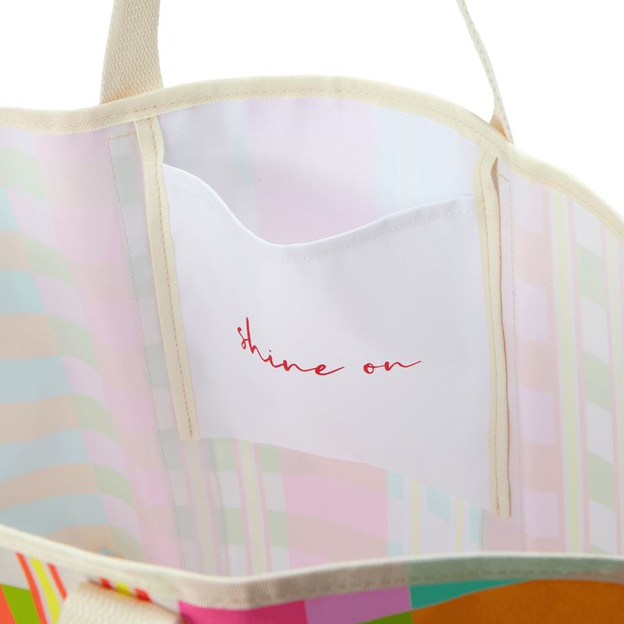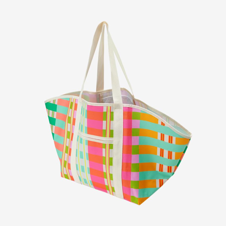 Большая и прочная пляжная сумка с ярким узором позволит собрать и переносить все необходимое для приятного отдыха на пляже: от полотенец и ланча до солнцезащитного крема и купальников.