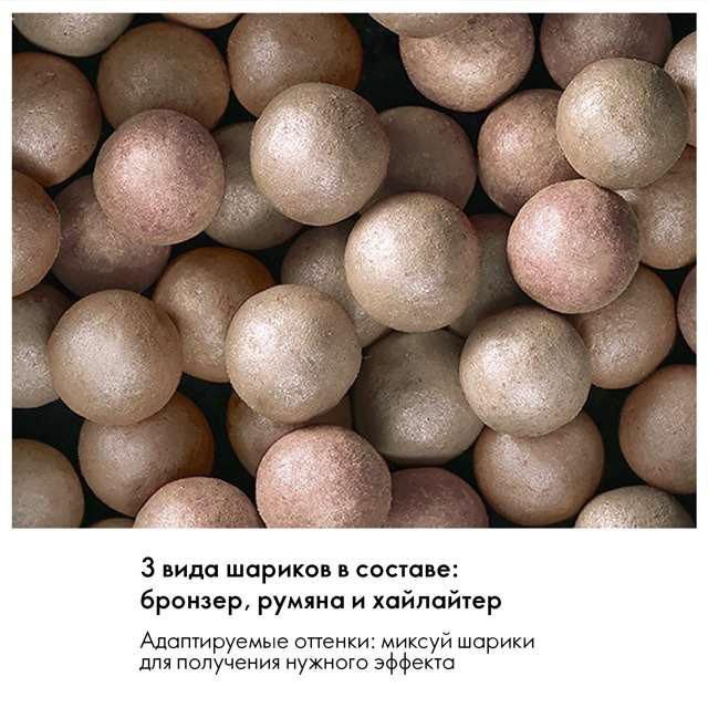 - Румяна-бронзер можно персонализировать: по мере необходимости удаляйте темные или светлые шарики, смешивайте и сочетайте жемчужины из разных оттенков.