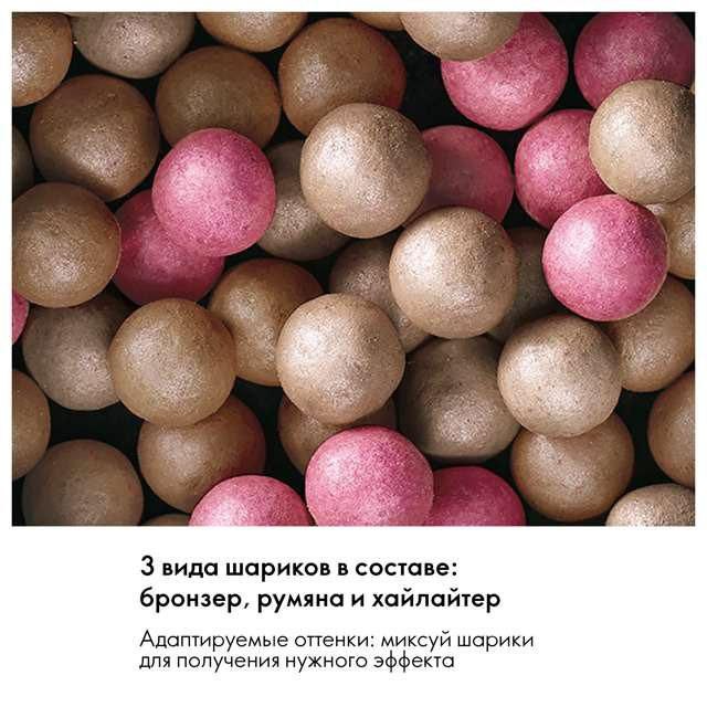 • 3 вида шариков в каждой баночке: бронзер, румяна и хайлайтер
