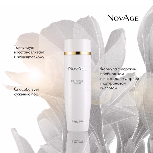 Увлажняющая эссенция для лица NovAge от Орифлейм — это один из традиционных этапов азиатского ухода за кожей, получившего признание мировой бьюти-индустрии благодаря прогрессивным формулам и многоступенчатым ритуалам красоты. Теперь ты можешь дополнить эссенцией с мультиактивным морским пребиотиком свой комплексный уход от NovAge и усилить его действие. Она восстанавливает кожу, укрепляет эпидермис, улучшает цвет лица и придает ему более здоровый вид — мгновенно и при регулярном применении. Эффективность доказана клинически: поры менее заметны, кожа наполнена энергией и выглядит моложе.