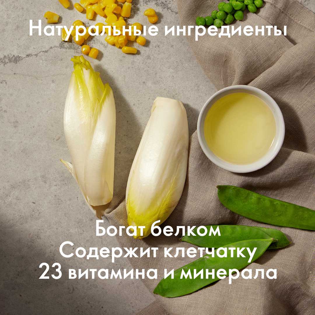 Состав: гороховый белок, концентрат белка садовых бобов, резистентный декстрин (из кукурузы), инулин (из корня цикория), калиевые соли ортофосфорной кислоты, натуральные ароматизаторы (содержат стабилизатор эфир крахмала и натриевой соли октенилянтарной кислоты), масло подсолнечное, антиокислитель (лецитин), кальция карбонат, загустители (гуаровая камедь, ксантановая камедь), мальтодекстрин, магния оксид, кальциевые соли ортофосфорной кислоты, L-аскорбиновая кислота (витамин С), подсластитель (стевиолгликозиды), железа фумарат, DL-альфа-токоферола ацетат (витамин Е), цинка сульфат, никотинамид (витамин В3), ретинола ацетат (витамин А), марганца сульфат, филлохинон (витамин К1), D-пантотенат кальция (витамин В5), натрия селенат, D-биотин, меди сульфат, цианкобаламин (витамин В12), калия йодид, птероилмоноглутаминовая кислота (фолиевая кислота), эргокальциферол (витамин D), пиридоксина гидрохлорид (витамин В6), рибофлавин (витамин В2), тиамина мононитрат (витамин В1).