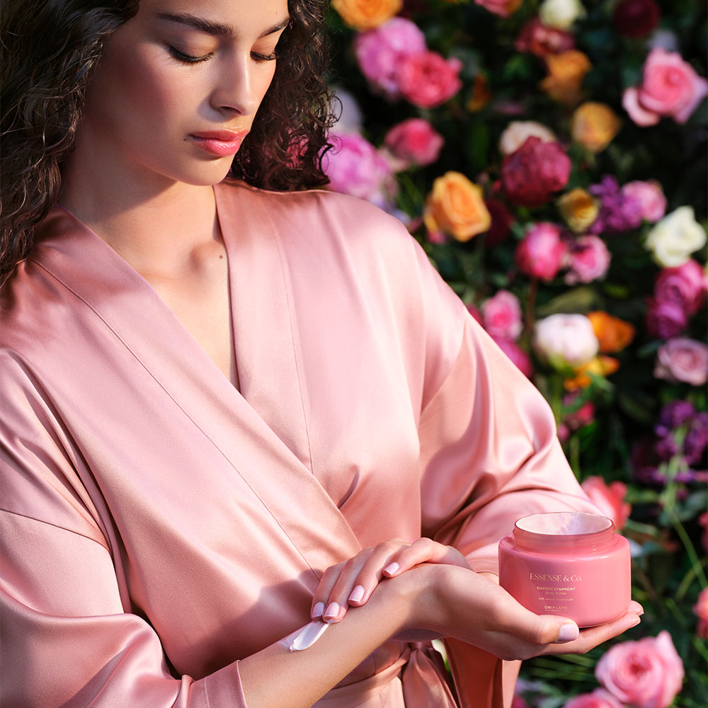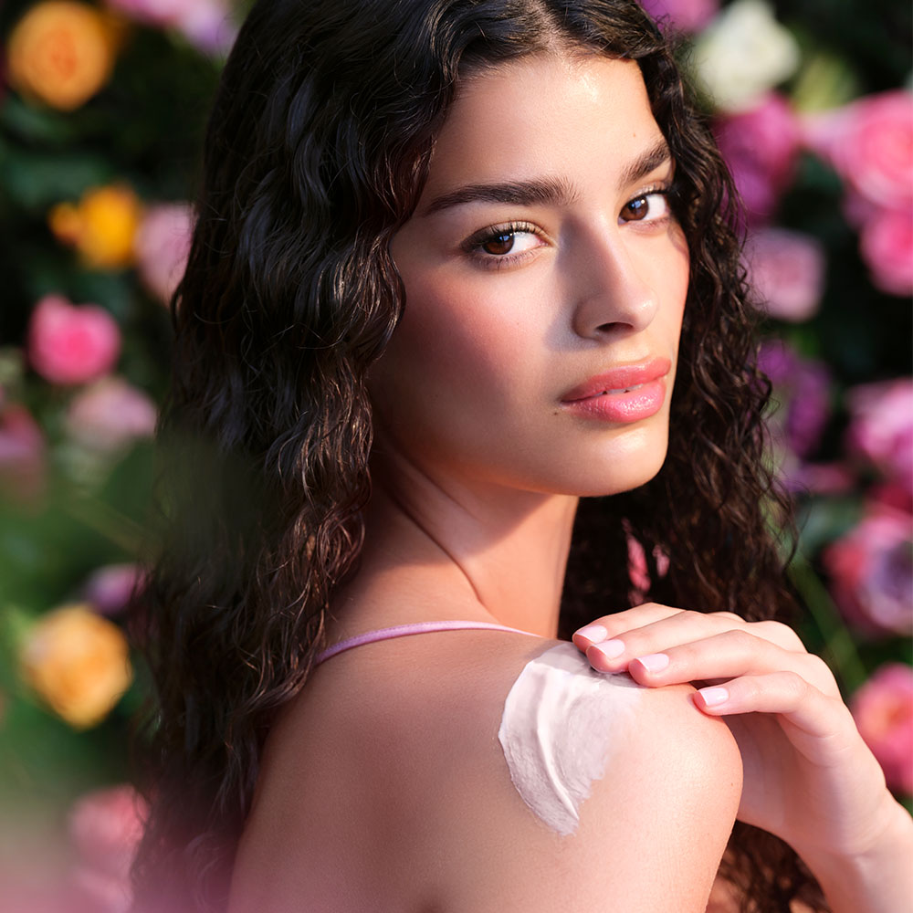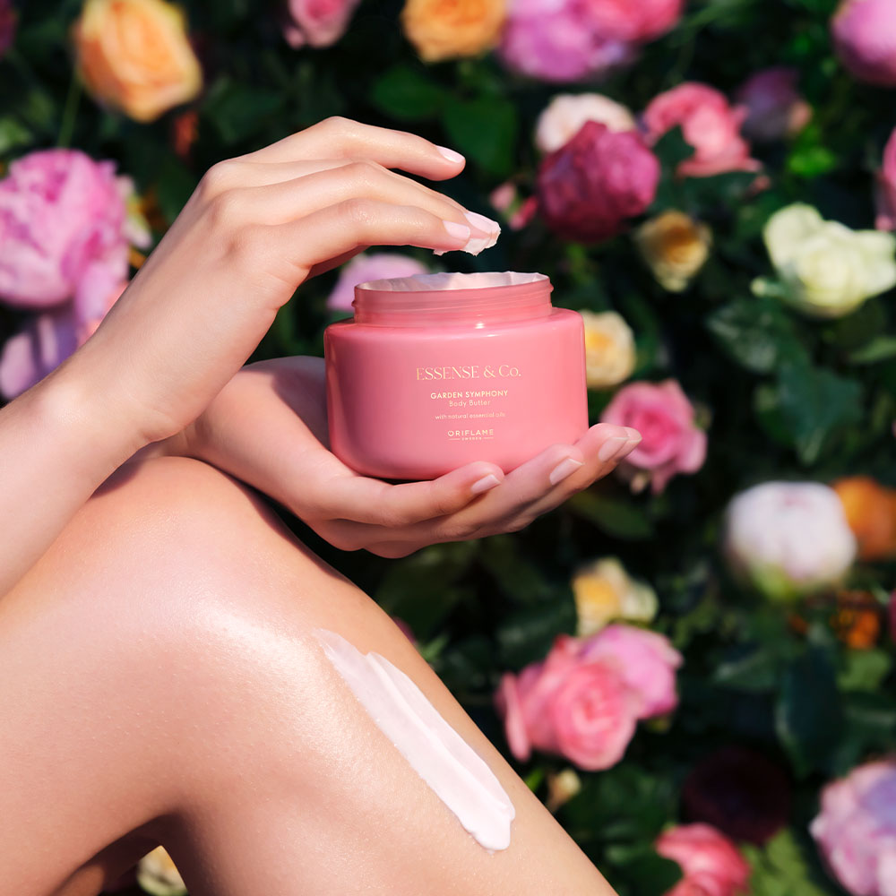 Насыщенный крем-масло для тела, который тает на коже, обеспечивая увлажнение на 48 часов. Обогащен питательными ингредиентами и дарит свежий цветочный аромат розы и фиалки, напоминающий о благоухающем саде.